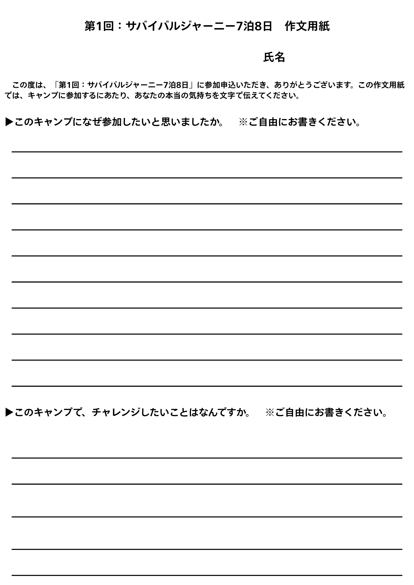 【作文用紙】第1回サバイバルジャーニー7泊8日